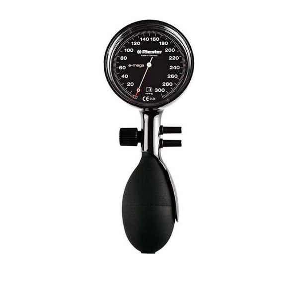 Aneroide Blutdruckmessgeräte Riester Set I, e-mega, mit 3 desinfizierbaren Manschetten, 1 Schlauch, mit Schachtel (verfügbar in 2 Farben)