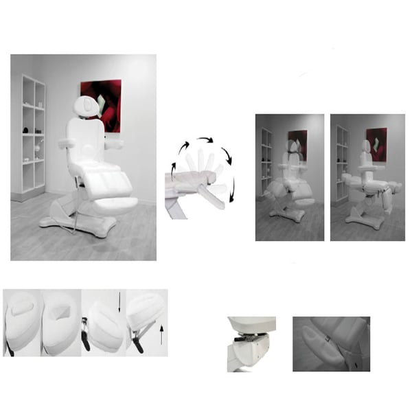 Sein Design ermöglicht es Ihnen, Komfort bei jeder Behandlung zu genießen, sei es Gesichts- oder Ganzkörperbehandlung, außerdem verfügt es über mehrere Varianten für Pedikürebehandlungen . Die Trage hat drei Körper und drei Motoren, um die Höhe und die Neigung der Rückenlehne zu regulieren und die Trage vollständig zu vaskularisieren. Die Fußstütze ist motorisch verstellbar.