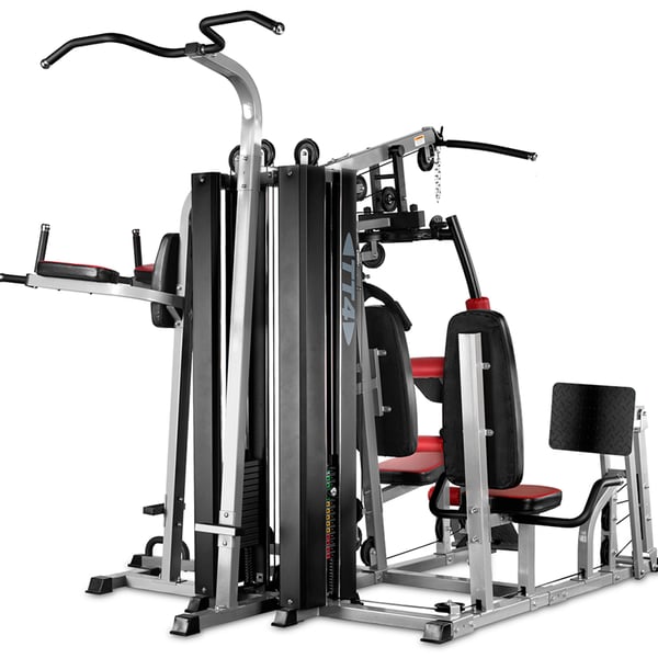 Das BH Fitness TT4 G159 ist ein 4-Stationen-Krafttrainingsgerät für umfassendes Krafttraining im gehobenen Heimbereich sowie für den semiprofessionellen/leicht gewerblichen Einsatz . Bis zu vier Personen können gleichzeitig an einem Gerät trainieren , wodurch es sich besonders für geräumige Wohnungen, Wohnanlagen, Hotels oder Fitnessstudios mit begrenztem Platzangebot eignet. Es verfügt über einen verstärkten Rahmen, ein Gewichtsscheibensystem mit magnetischer Auswahlvorrichtung und eine separate Beinpresse .