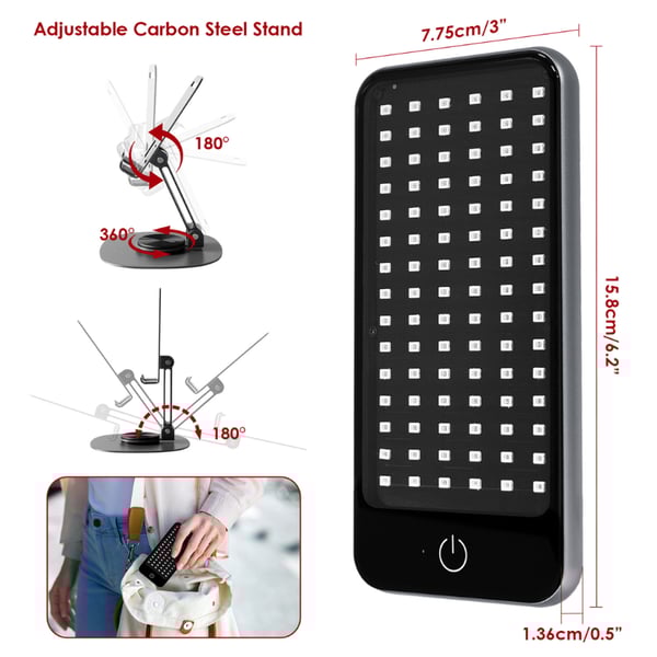 - Es emittiert rotes Licht (660 nm) und nahinfrarotes Licht (850 nm) , gängige Frequenzen in der Photobiomodulation.