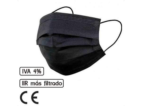 Chirurgische Maske Typ IIR in schwarzer Farbe mit drei Schichten und CE-Kennzeichnung (Box 50 Stück)