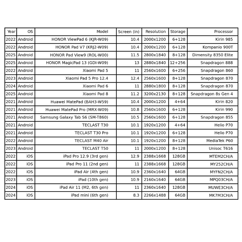 Tablet-Modelle, die mit dem tragbaren Ultraschallscanner Sonoeye kompatibel sind