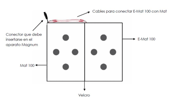 Die Magnetotherapiematte E-Mat 100 ist als Erweiterung der Matte Mat 100 zu betrachten , da sie über zwei kleine Verbindungskabel mit dieser verbunden werden muss.