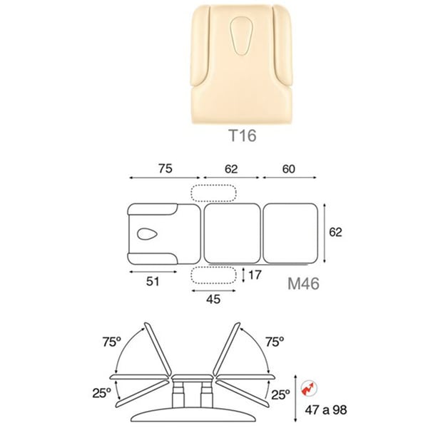 Ecopostural elektrische Trage: Drei Körper mit hydraulischem Rückenlehnen- und Kopfstützensystem und integrierten Armlehnen (62 x 198 cm)
