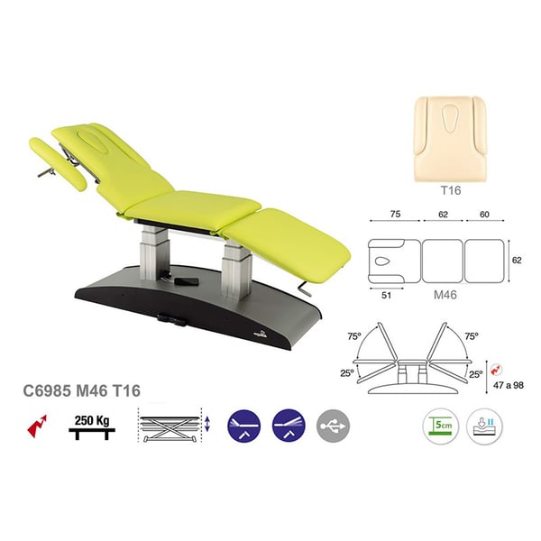 Ecopostural elektrische Trage: Drei Körper mit hydraulischem Rückenlehnensystem und Kopfstütze mit bis zu 100° Neigung (62x198 cm)
