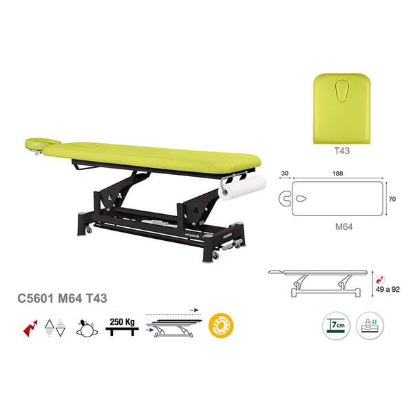 Ecopostural elektrische Trage: ein Körper mit schwarzer Verbindungsstangenstruktur und T43-Kopfstütze (70 x 188 cm)