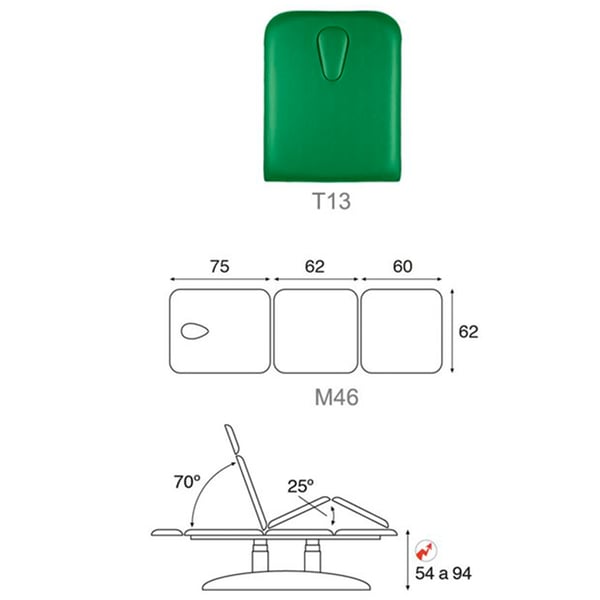 Elektrische Ecopostural-Trage: Vertikale Erhöhung mit zwei Säulen, drei Körpern und ergonomischem Gesichtsloch (62 x 198 cm)
