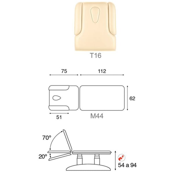 Elektrische Ecopostural-Trage: Vertikale Höhe von 54 bis 94 cm, neigbarer Kopf bis zu 90 ° und zwei Körper (62 x 188 cm)