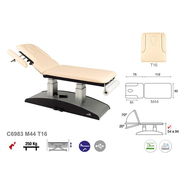 Elektrische Trage mit vertikaler Hebung von zwei Säulen, zwei Körpern und neigbarem Kopf bis zu 90°. Darüber hinaus ist ein Toilettenpapierhalter im Lieferumfang enthalten. Es hat ein einfaches, modernes und funktionales Design. Ein weiterer großer Vorteil des Tisches ist seine Vielseitigkeit, da er sich ideal für zahlreiche Bereiche eignet: Physiotherapie, Osteopathie, Allgemeinmedizin, Ästhetik, Tätowierungen. Eine perfekte Lösung für jeden Gesundheits- und Ästhetikprofi.