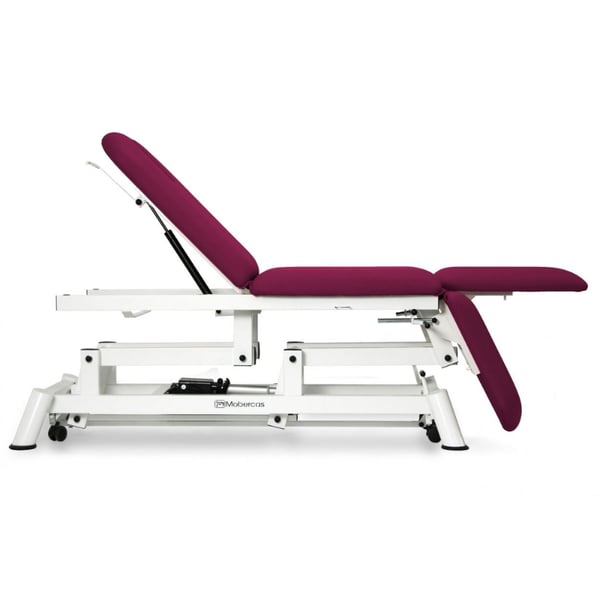 Dreiteilige elektrische Krankentrage, Stuhltyp, mit Höhenverstellung, gerader Aufstieg ohne seitliche Bewegung, unabhängig anhebbare/neigbare Beinstützen, Gesichtskappe und einziehbare Räder . Erhältlich mit Armlehnenoption . Es ist eine Liege, die speziell für Physiotherapie- und Rehabilitationsbehandlungen entwickelt wurde.