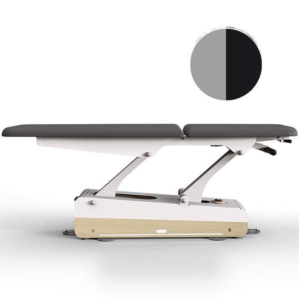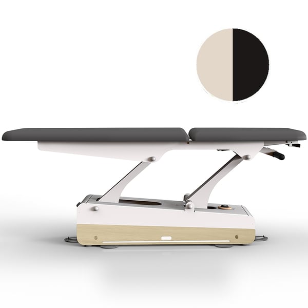 Elektrische Physiotherapieliege Swop 2L Physio: zweiteilig, lange Kopfstütze, vollständig anpassbare, nahtlose Polsterung, ein Modell, das die Spielregeln verändert