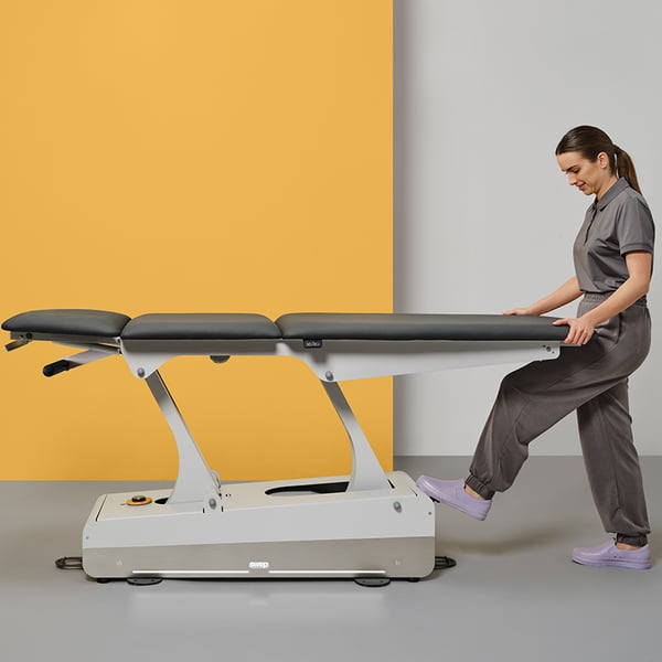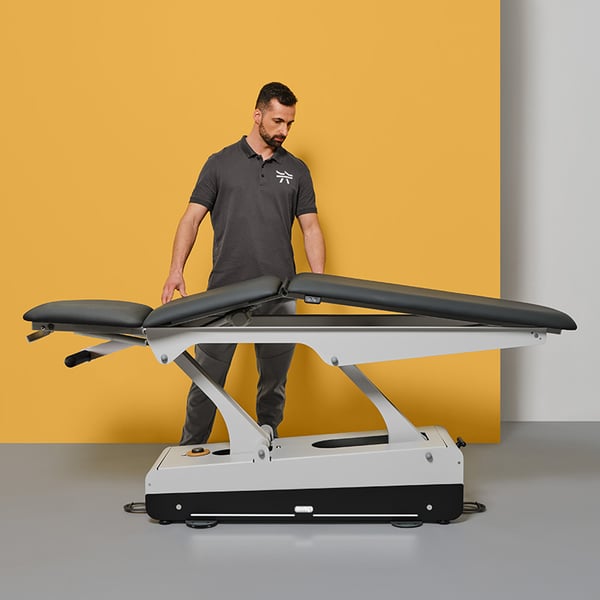 Elektrische Physiotherapieliege Swop 3 Pro Physio: dreiteilig mit kurzer Kopfstütze, motorisiertem Mittelteil, individuell anpassbar, nahtlose Polsterung, mit Doppelkolben, ein bahnbrechendes Modell