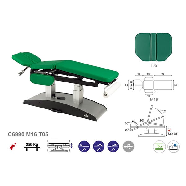 Elektrische Trage „Ecopostural“: Vertikale Erhöhung mit zwei Säulen, drei Körper mit Armlehnen und um 70° neigbarem Kopf (50 x 198 cm)