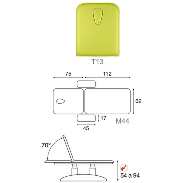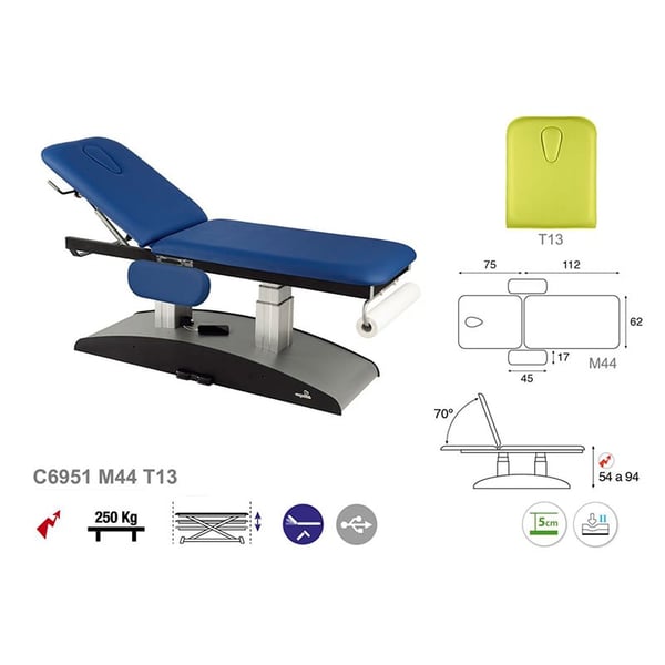Elektrische Trage mit zwei Säulen, drei Körpern und vertikaler Hebung mit klappbaren Armen und Kopf vom Typ T04. Es hat ein einfaches, modernes und funktionales Design. Ein weiterer großer Vorteil des Tisches ist seine Vielseitigkeit, da er sich ideal für zahlreiche Bereiche eignet: Physiotherapie, Osteopathie, Allgemeinmedizin, Ästhetik, Tätowierungen. Eine perfekte Lösung für jeden Gesundheits- und Ästhetikprofi.