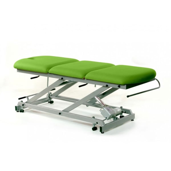 Dreiteilige elektrische Untersuchungsliege, mit manueller Mittelfaltung, Toilettenpapierhalter und Gesichtskappe . Es bietet die Möglichkeit, einziehbare Räder hinzuzufügen . Speziell für Physiotherapie- und Rehabilitationsbehandlungen entwickelt.