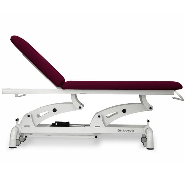 Elektrische Untersuchungsliege: zwei Körper, mit zwei Motoren zur Höhen- und Rückenlehnenverstellung, Rollenhalter, Gesichtskappe und einziehbaren Rädern