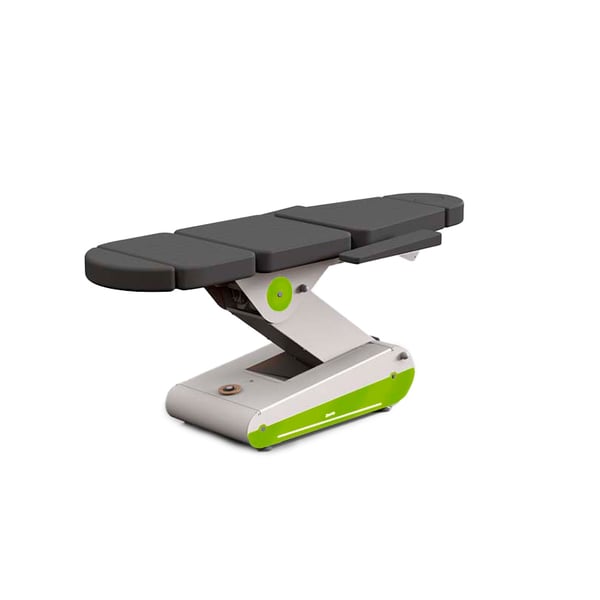 Das Swop-Ästhetikmodell besteht aus fünf Abschnitten , um Behandlungen mit vollständig liegendem oder halb zurückgelehntem Patienten durchzuführen. Die Trage ist standardmäßig mit LED-Beleuchtung mit weißem Licht und dem 360º 4-Rad-System mit Verriegelung und Entriegelung mittels eines Hebels ausgestattet.