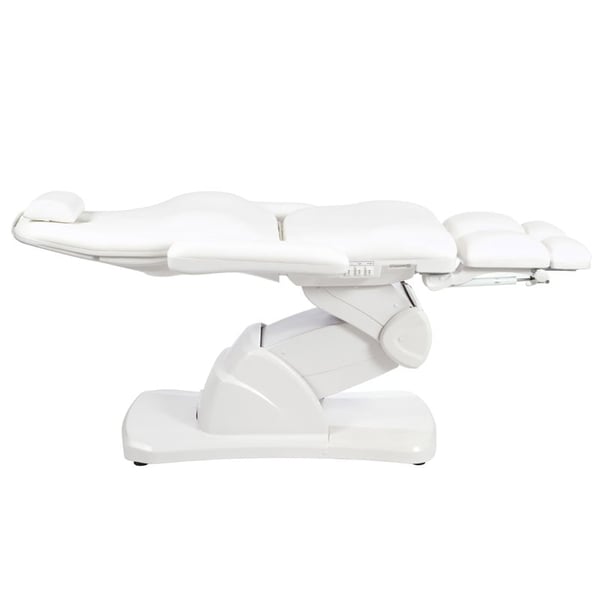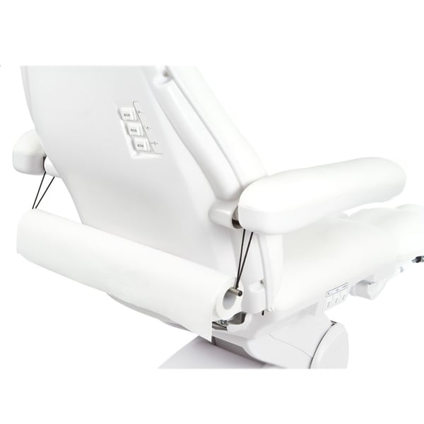 Auch mit fünf Motoren erhältlich (Modell 2244C), die die Höhe beider Fußstützen regulieren. Die in Rückenlehne, Fußstütze und Sitzfläche integrierten Knopfleisten ermöglichen eine vollständige Steuerung der Bewegungen von jedem Punkt der Trage aus und die weiße PU-Polsterung ist hochwertig, nahtlos und leicht zu reinigen.