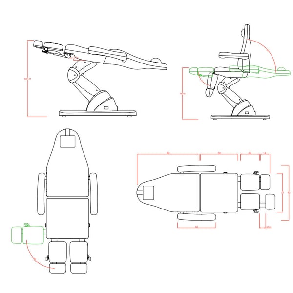 Elektrischer Podologiestuhl Cubo: Drei Motoren steuern Höhe, Rückenlehne und Sitzneigung
