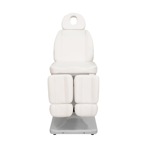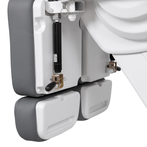 Die Fußstützen sind unabhängig und per Gasdruckfeder verstellbar, die Armlehnen sind klappbar und die verstellbare Kopfstütze verfügt über eine Gesichtsöffnung, ideal für Schönheits- oder Wellnessbehandlungen.