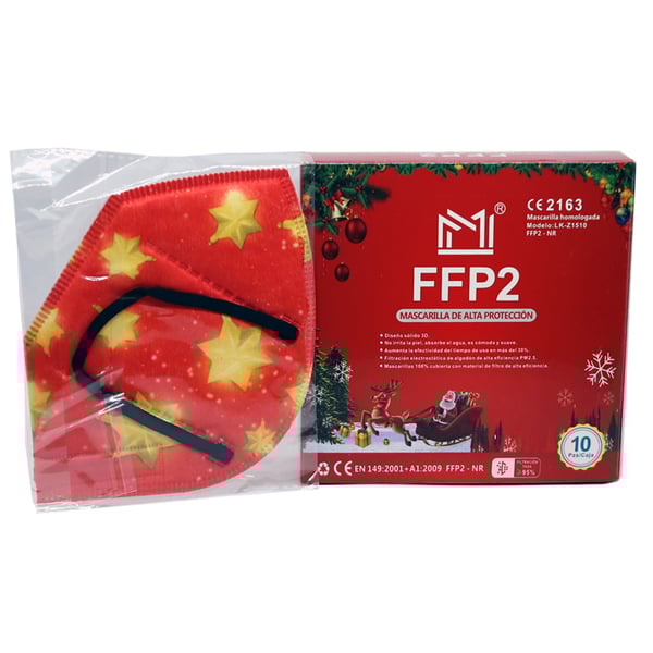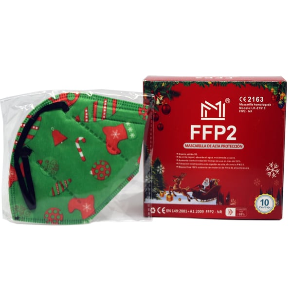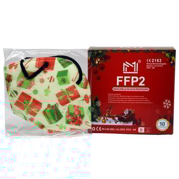 FFP2 Weihnachtsmasken und europäisches CE-Zertifikat (einzeln verpackt - Karton mit 10 Stück)