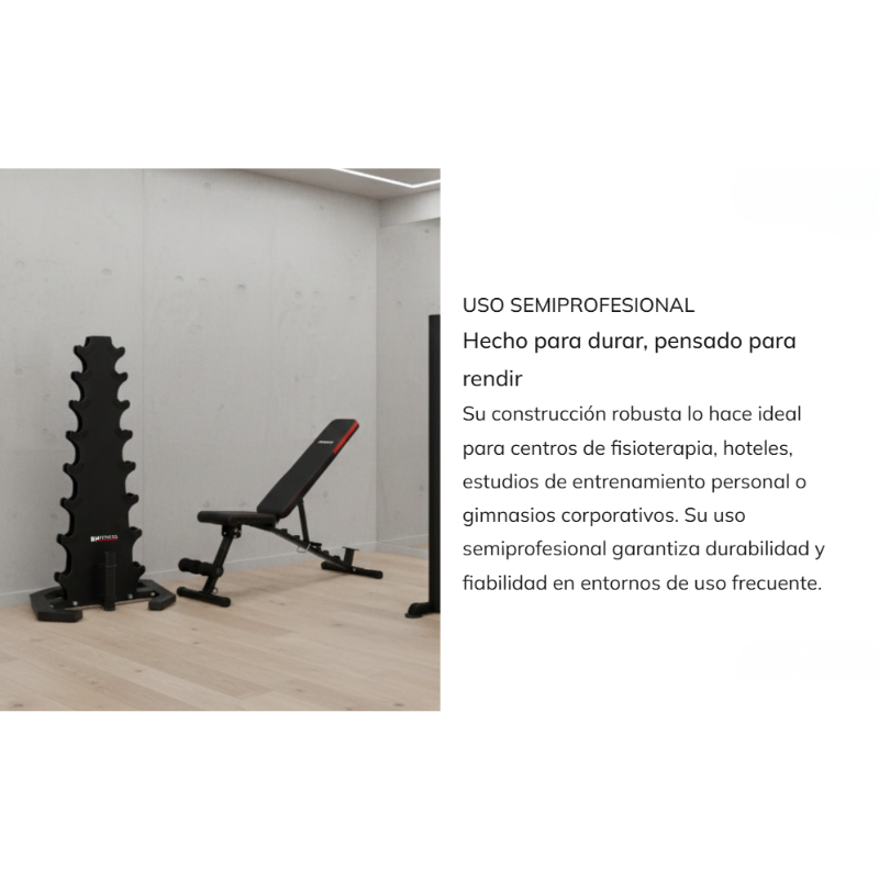 - Effiziente Organisation des Trainingsbereichs , wobei die Hanteln ordentlich und griffbereit aufbewahrt werden.