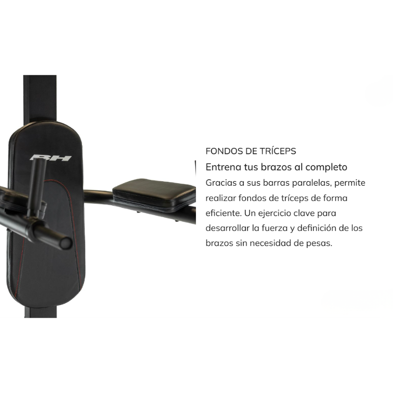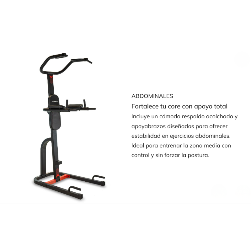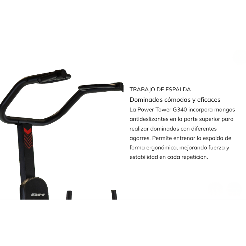 Der Power Tower G340 ist eine Multistation für das Krafttraining zu Hause, die mit dem eigenen Körpergewicht arbeitet und für ein umfassendes Training konzipiert wurde. Er trainiert primär Rücken, Bauchmuskeln, Trizeps und Brustmuskulatur durch Klimmzüge, Beinheben, Dips und unterstützte Liegestütze. BH präsentiert ihn als robuste Lösung für funktionelles Heimtraining, die sich an Nutzer richtet, die vielseitige Übungen ohne Gewichte oder komplexe Geräte wünschen.