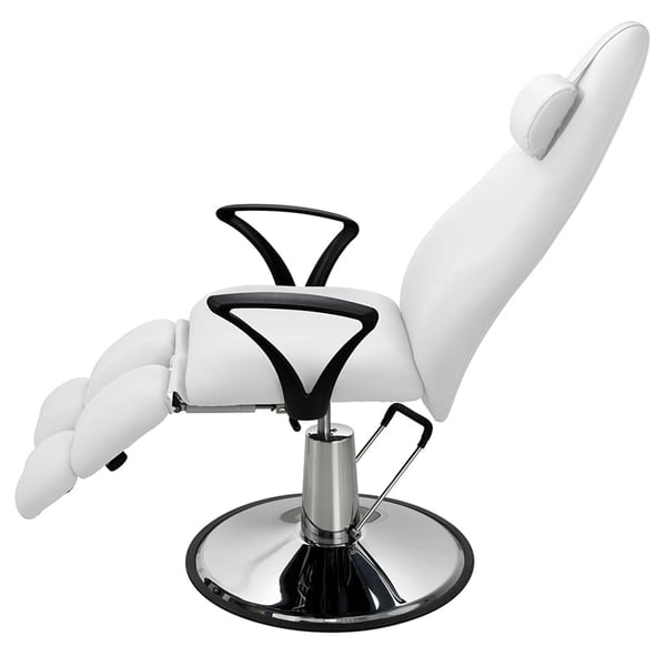 Drehbarer Podologiestuhl mit höhenverstellbarer Höhe durch Hydraulikpumpe, Rückenlehne und Fußstütze, unabhängig vom Gaskolben verstellbar.