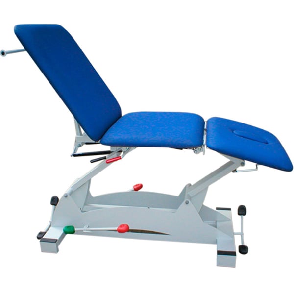 - Das Bett der Trage verfügt über 3 durch Kolben klappbare Körper mit beidseitigen Hebeln. Die Höhe kann mithilfe eines hydraulischen Pedalsystems in der Mitte der Trage von 48 cm auf 90 cm erhöht werden, sodass sich der Fachmann problemlos an die durchzuführende Therapie anpassen kann.
