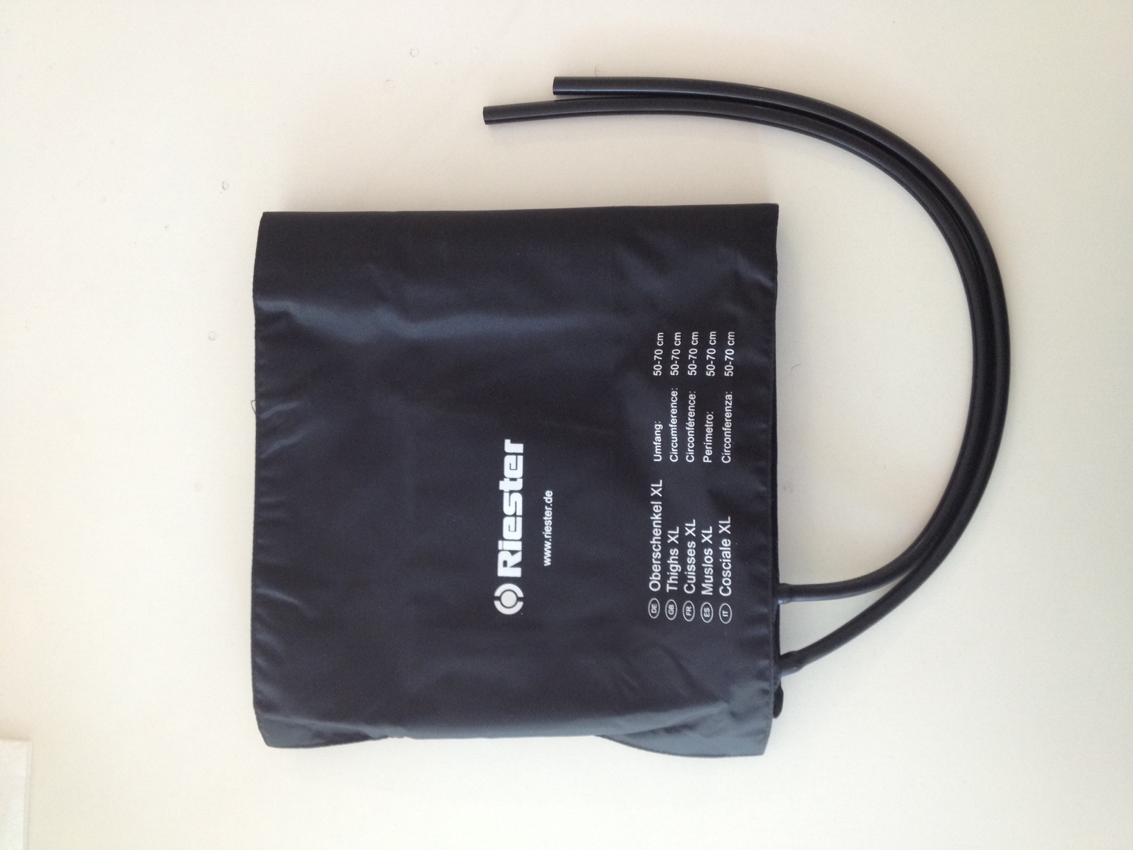 Beschreibung Manschette für Blutdruckmessgerät Riester, schwarz, 2 Schläuche, für Erwachsene, XL Oberschenkel, 100 x 26 cm, Umfang 50 -70 cm (SOLANGE DER VORRAT REICHT)