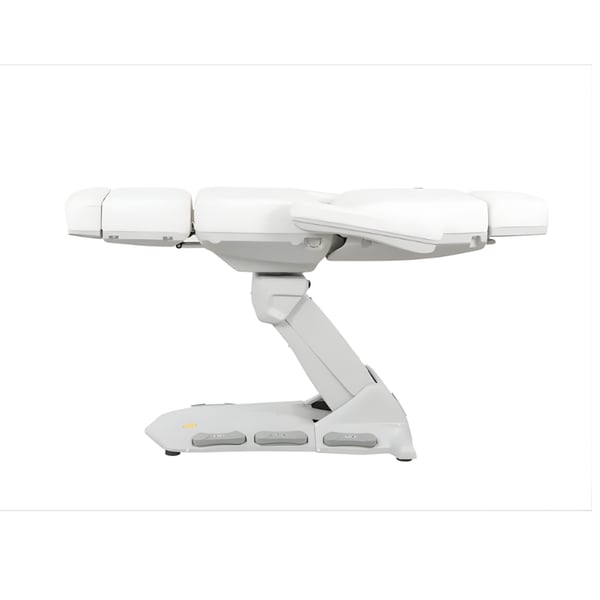 Dieses Modell verfügt über ein integriertes Heizsystem mit per Fernbedienung einstellbarer Temperatur und bietet so ein komfortableres Behandlungserlebnis, insbesondere bei längeren Sitzungen. Es ist mit drehbaren Armlehnen, einer ausziehbaren Kopfstütze und einer ausziehbaren Fußstütze ausgestattet, die eine präzise Anpassung an jeden Kunden ermöglichen.