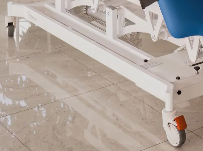 - Vier Schwenkräder, alle mit Bremsen, ermöglichen ein einfaches Bewegen der Trage.