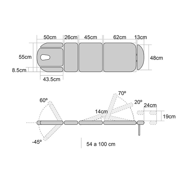 - Hebelfunktionen: Mittelfalte, Rückenlehne, Trendelenburg