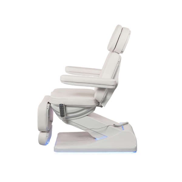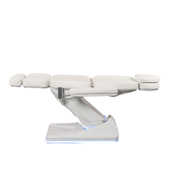 Der OASIS-Tisch ist eine fortschrittliche Behandlungslösung, die modernes Design, überragende Stabilität und professionelle Funktionalität vereint. Dank seiner vier Elektromotoren ermöglicht er eine vollständige Verstellung von Höhe, Rückenlehne, Sitzfläche und Fußstütze, alles bequem über eine Handfernbedienung gesteuert.