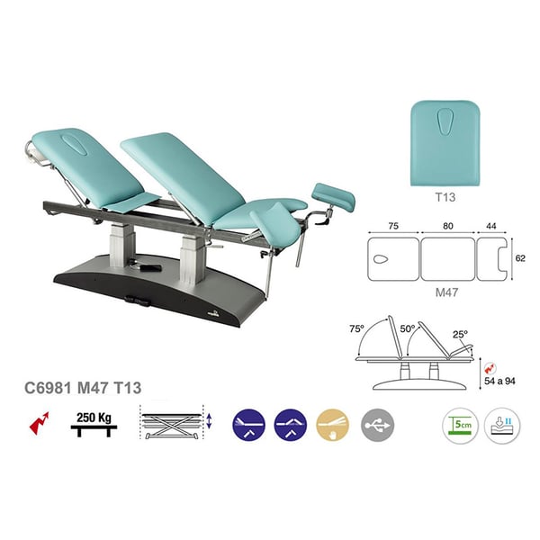 Ökoposturale elektrische Trage: Spezialisiert auf Gynäkologie und Untersuchung, mit Beinschlaufen und drei Körpern (62 x 200 cm)