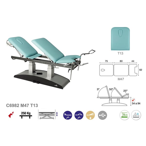 Ökoposturale elektrische Trage: Spezialisiert auf Gynäkologie und Untersuchung, mit Steigbügeln und drei Körpern (62 x 200 cm)