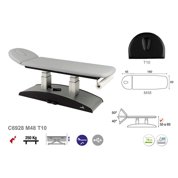 Elektrische Trage mit zwei Säulen, zwei Körpern und vertikaler Erhöhung mit integriertem ergonomischem Gesichtsloch. Sie verfügt über ein einfaches, modernes und funktionales Design. Ein weiterer großer Vorteil des Tisches ist seine Vielseitigkeit, da er sich ideal für zahlreiche Bereiche eignet: Physiotherapie, Osteopathie, Allgemeinmedizin, Ästhetik, Tätowierungen. Eine perfekte Lösung für jeden Gesundheits- und Ästhetikprofi.