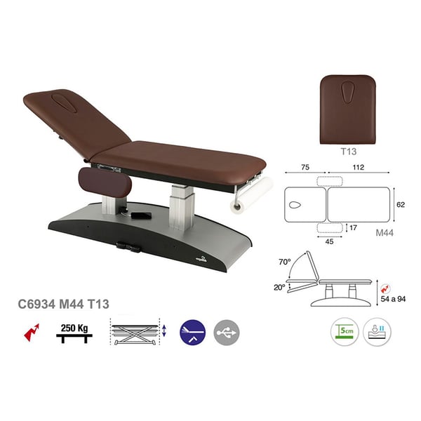 Ökoposturale elektrische Trage: Vertikale Erhöhung, klappbare Arme, zwei Körper und neigbarer Kopf im negativen 20°-Winkel (62 x 188 cm)