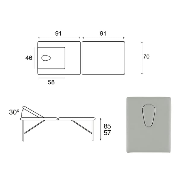 Innovative zweiteilige professionelle Ecopostural-Klapptrage , ideal für jede Art von Behandlung. Es besteht aus einem verstellbaren Kopfteil und einer Struktur aus Naturholz. Es verfügt außerdem über einen oszillierenden Kopf und eine Gesichtskappe für mehr Komfort. Es verfügt außerdem über eine Schaumstoffpolsterung in verschiedenen Stärken und eine Polsterung der Klasse M2.