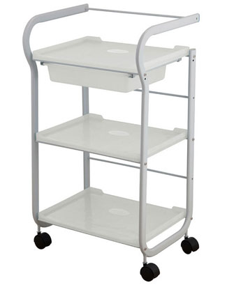 Teilewagen mit 3 Einlegeböden und Schubladen aus weißem Metall
