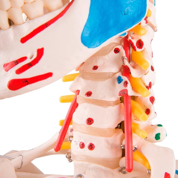 Dieses Modell ist aus medizinischer und anatomischer Sicht aufgrund der einzigartigen Kombination von mehr als 600 verschiedenen Strukturen, darunter eine flexible Wirbelsäule, Muskelansätze, nummerierte Knochen, flexible Gelenkbänder und ein vorgefallener Zwischenwirbelknorpel , von großem Interesse der 3. und 4. Lendenwirbel.