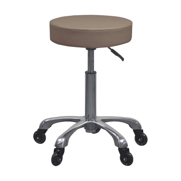 Silent Fast Hocker ohne Rückenlehne und höhenverstellbar per Gasdruckfeder: Flache und runde Sitzfläche, verchromtes Gestell mit fünf geräuscharmen Rollen (Beige und Weiß).