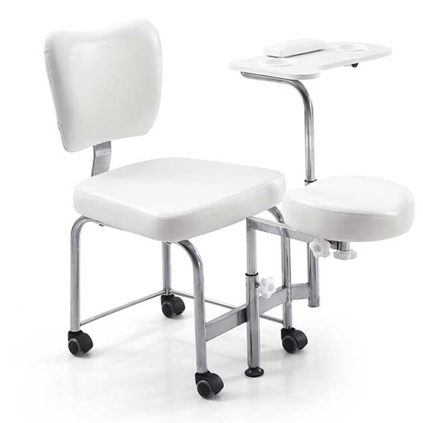 Pediküre Stuhl mit Hocker mit zwei Schubladen Schubladenablage , beide Räder. Es ist mit einer sich drehenden und einstellbaren Seitenablage mit Handlehnenpolsters und Maniküre Schalen, sowie eine verstellbare Fußstütze enthalten.