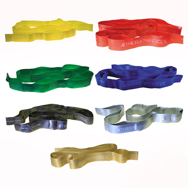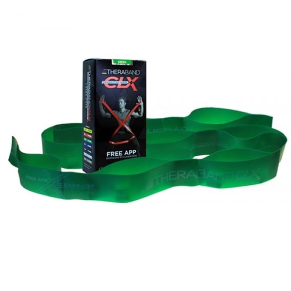 CLX von Theraband ist ein revolutionäres latexfreies elastisches Produkt mit einer Reihe von Schlaufen und einer Länge von 22 Metern