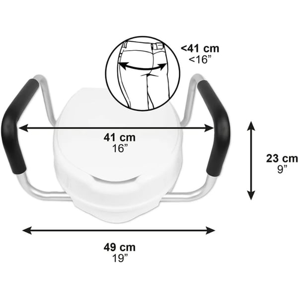 Die KMINA 10 cm Toilettensitzerhöhung mit Armlehnen wurde entwickelt, um die Toilettenbenutzung für Menschen mit eingeschränkter Mobilität , ältere Menschen oder Rehabilitationspatienten zu erleichtern. Ihr ergonomisches Design mit gepolsterten Armlehnen sorgt für mehr Stabilität und reduziert den Kraftaufwand beim Hinsetzen und Aufstehen, wodurch die Selbstständigkeit im Badezimmer verbessert wird.