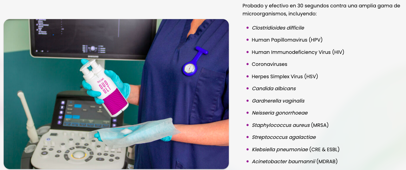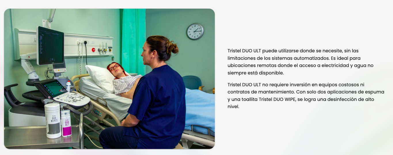 Tristel DUO ULT: Hochwertiges Desinfektionsmittel für Ultraschallsonden und endokavitäre Instrumente. Maximale Wirksamkeit gegen HPV bei kritischen Eingriffen innerhalb von 30 Sekunden.