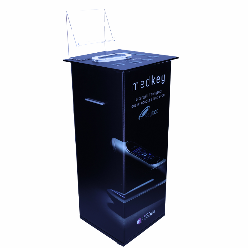 Seine Methacrylat-Plattform mit integrierter LED-Beleuchtung sorgt dafür, dass alle Elemente Ihres Medkey-Geräts perfekt organisiert und immer im Blickfeld bleiben, und verleiht Ihrem Arbeitsplatz eine moderne und professionelle Note.