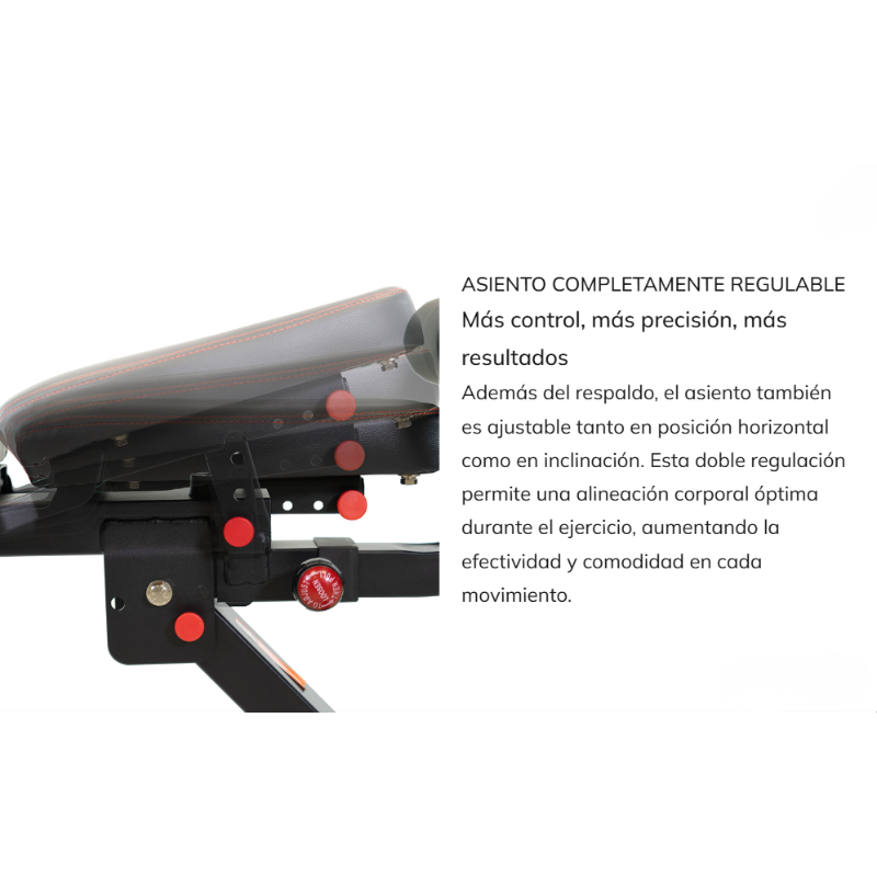 Dank des verstellbaren Rückenlehnensystems passt sich die Bank verschiedenen Positionen an, um das Muskeltraining zu optimieren und mehr Abwechslung zu bieten. Sie ist ideal für alle, die eine kompakte, stabile Bank suchen, die sich problemlos in ein Heim-Fitnessstudio integrieren lässt.