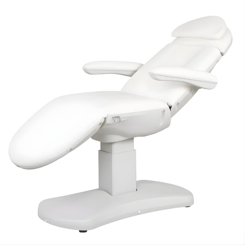 Es verfügt über eine abnehmbare Kopfstütze, drehbare Armlehnen und einen nahtlosen weißen PU-Bezug , der leicht zu reinigen und zu pflegen ist und somit Hygiene und Langlebigkeit garantiert.